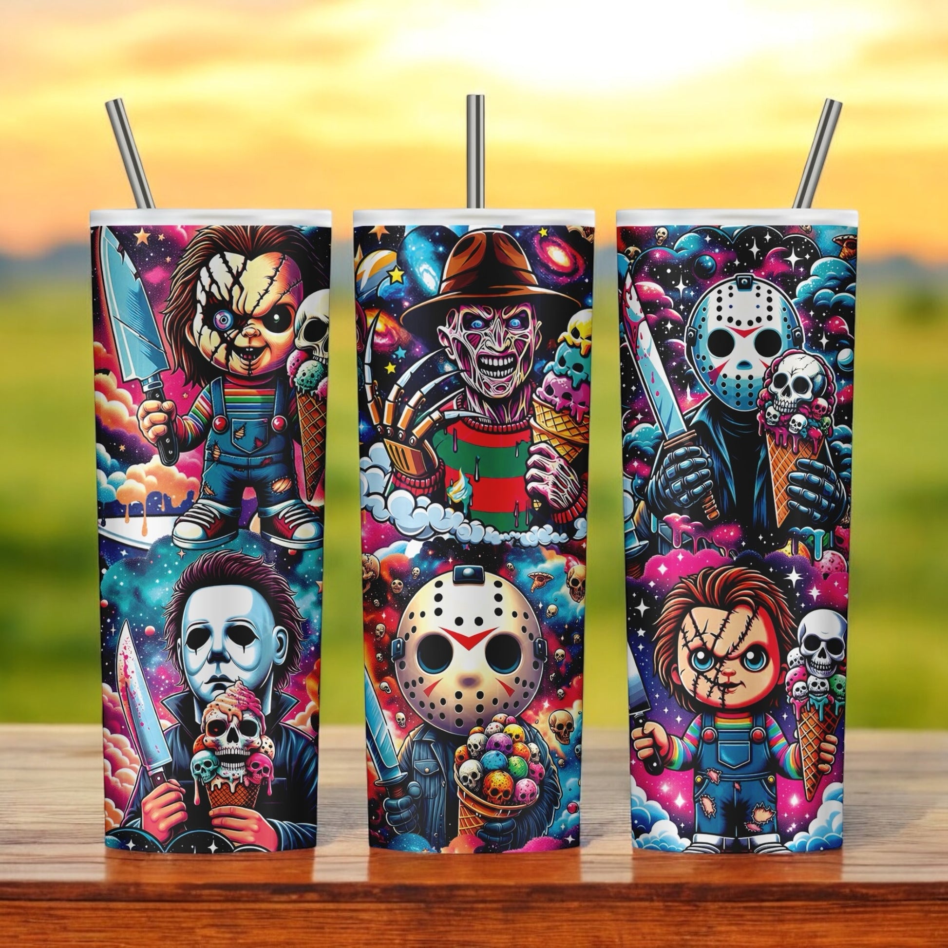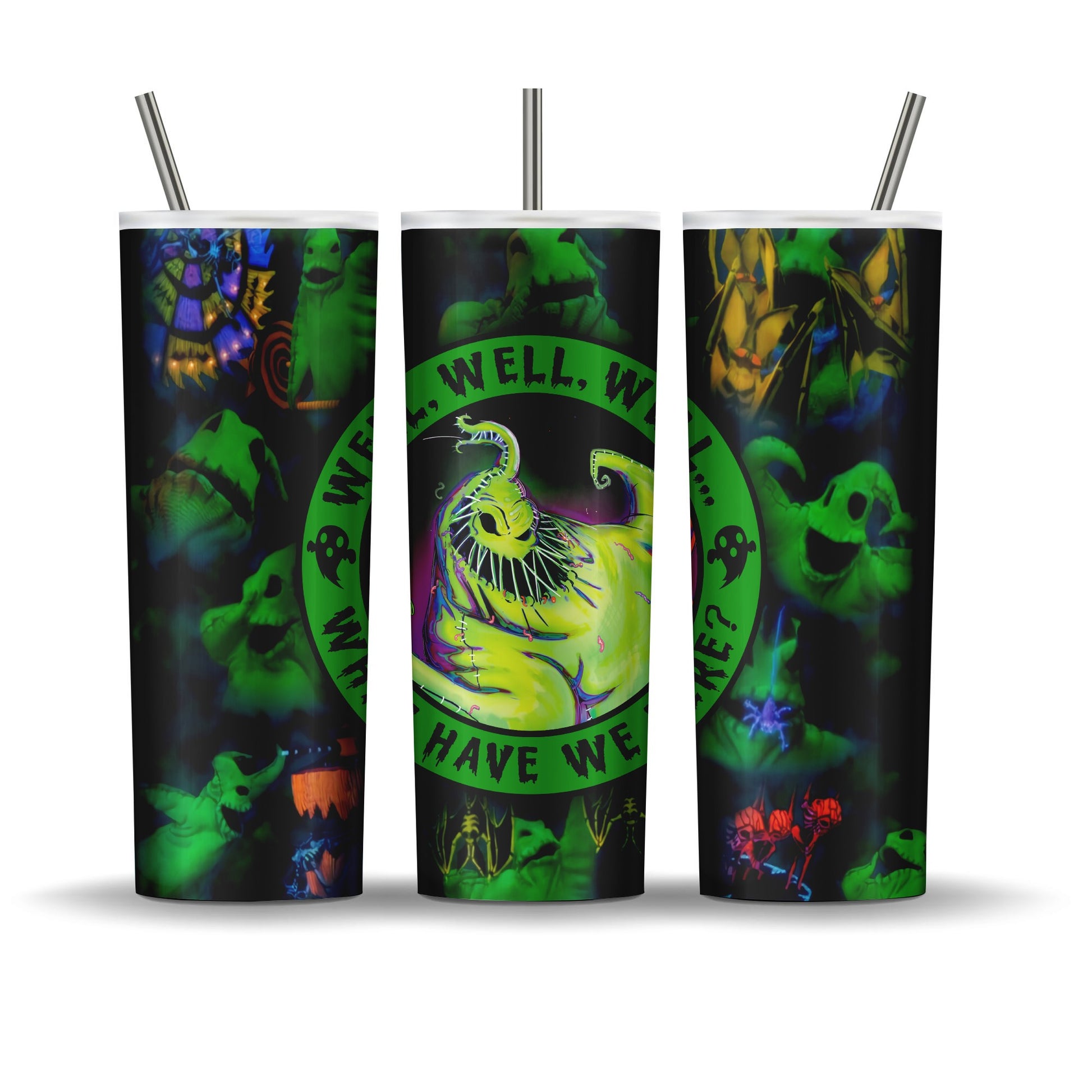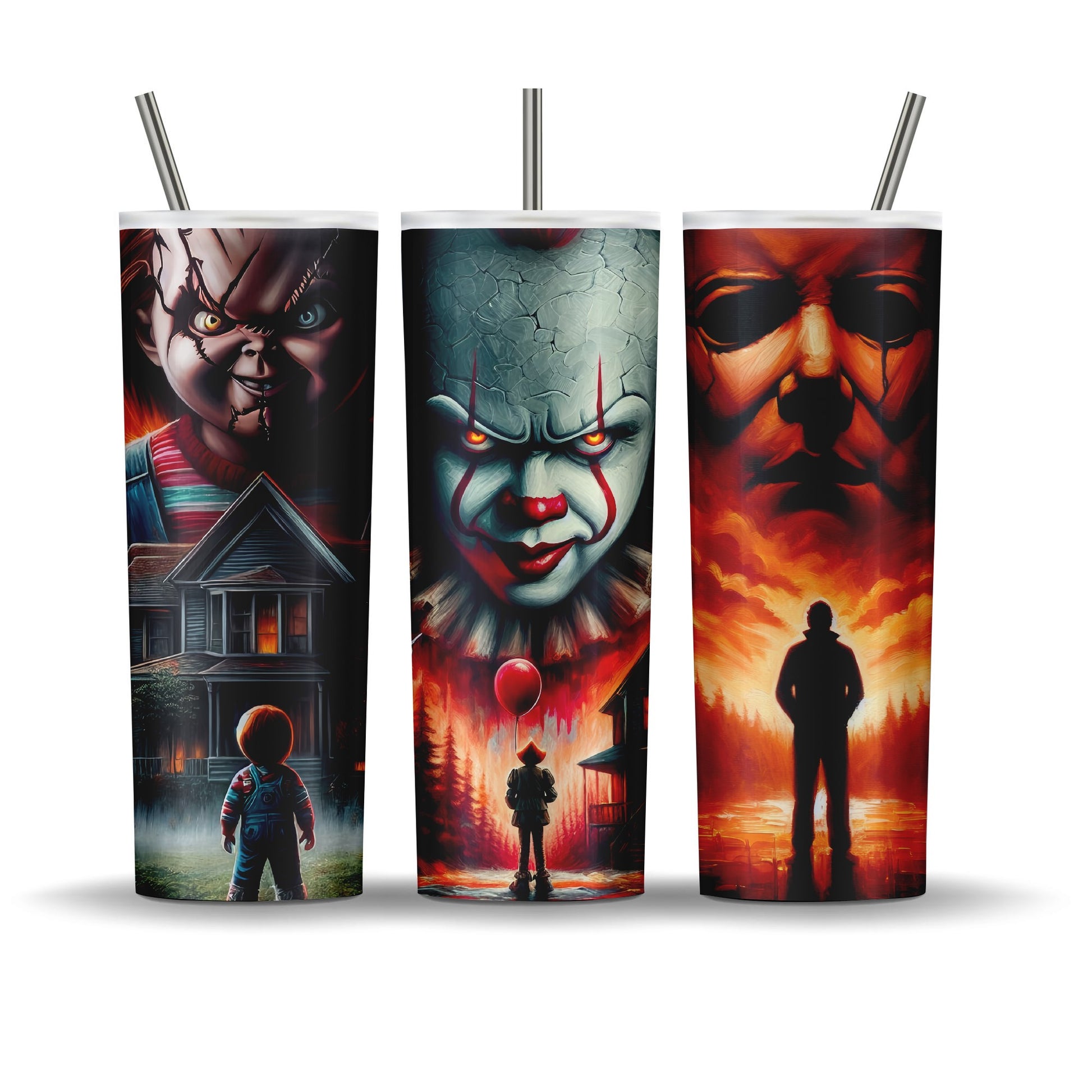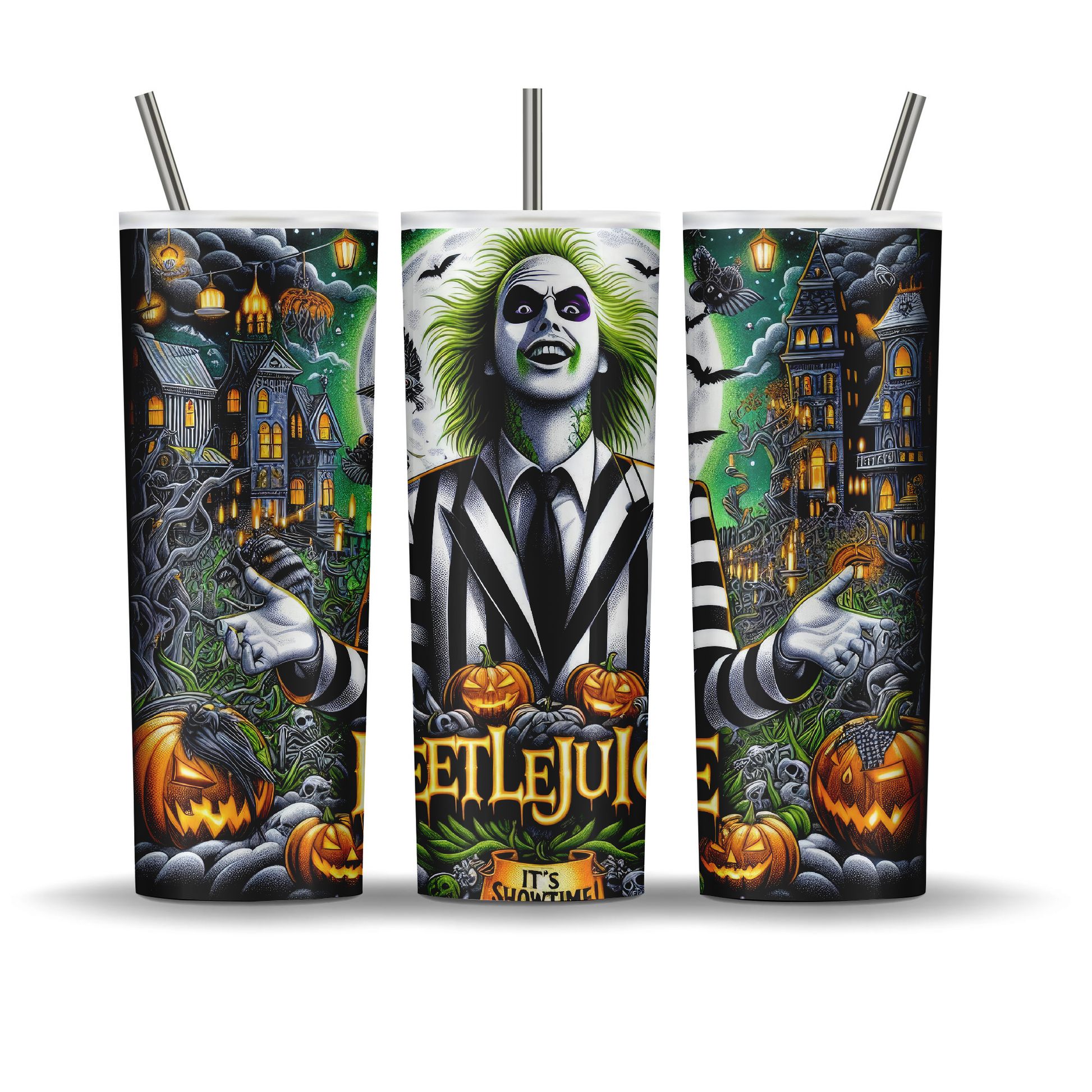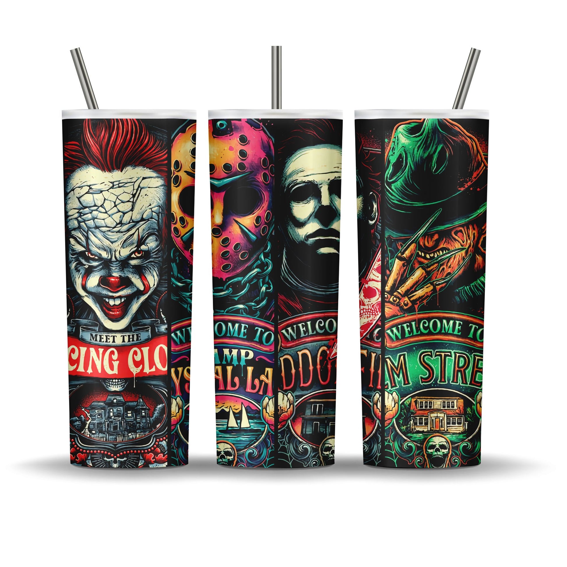 20 oz double walled stainless steel tumbler. Keeps drinks cold up to 12 hours. Comes with leak proof lid and plastic reusable straw, a metal straw, a rubber bottom, candy, coupon code to website, and a care card.